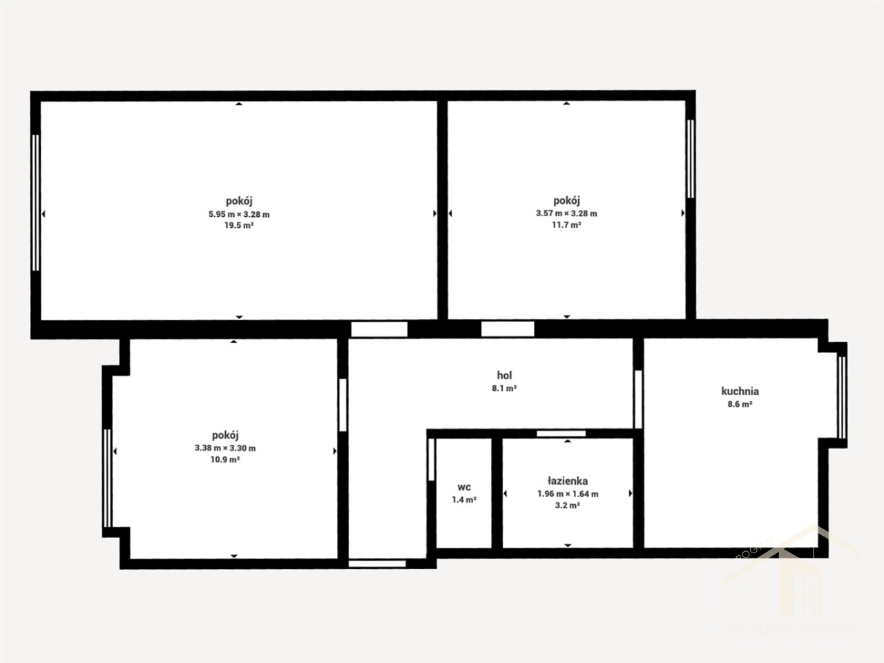 Mieszkanie ma funkcjonalny układ 3 osobnych i niezależnych pokoi, osobną kuchnię, loggię, osobne WC i łazienkę.